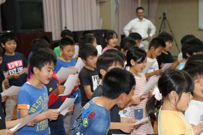 「うわばきクック」では、声で伝える楽しさを学びました。声は、はやさ、高さ、大きさを変えることによって表情が生まれます。ただ声がでるのではなく、何かを伝えようという意識をもって、声をだすようになってほしいと思います。