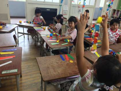 はじめて光まつりに参加する1年生ですが、よく準備していました。先生から言われたことを、すぐにできる子が多いです。きっとたくさんのお客さんが来てくれることでしょう。