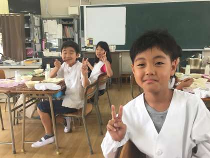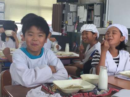 今日の給食は、いわしの天ぷら、みそ汁、豚肉と三度豆のいためものでした。いわしは、一口サイズでした。魚が苦手な子も食べやすかったです。