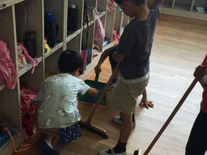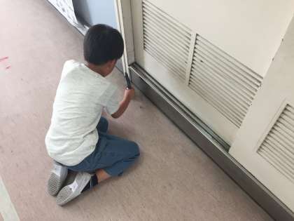 1年生の掃除の様子です。とてもていねいに掃除ができます。みんなで協力しあうこともいいですが、一人でも細かなところまで掃除ができる子は、すばらしいですね。
