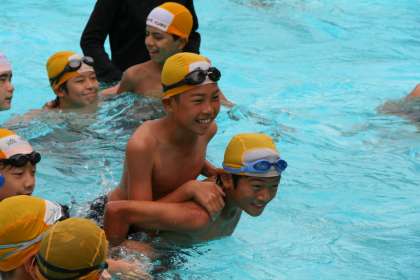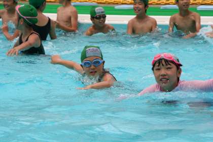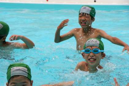 気温と水温を確認しながら、プール水泳を実施しています。できるかぎり、水泳学習を中止しないように、時間割を変更することもあります。