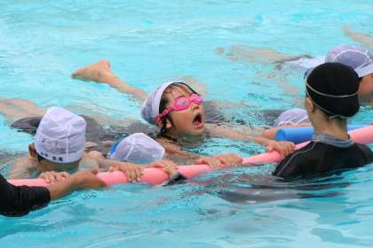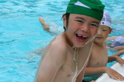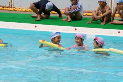 1時間目のプールでしたが、気温も水温も高く、寒さを感じることはありませんでした。低学年の子どもたちは水泳が好きで、少し水かさが多いくらいは平気です。