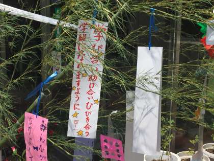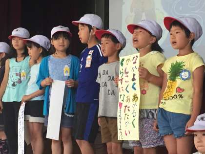今日は七夕集会でした。まず、七夕の物語を集会委員が紹介しました。そして、学級ごとに考えたクラスの願いごとを発表しました。最後に全員で七夕の歌をうたいました。1学期をしめくくるこの季節に、全校で心があたたまる時間をもつことができました。
