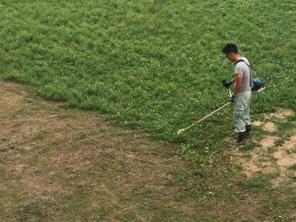 ヒアリ対策として、芝生の草むらに手を入れることのないように、草をきれいに刈ることにしました。また、プールサイドなど、校内の要所には薬を置きました。学校として、できることには限りがありますが、打てる対策は全てやっていきます。