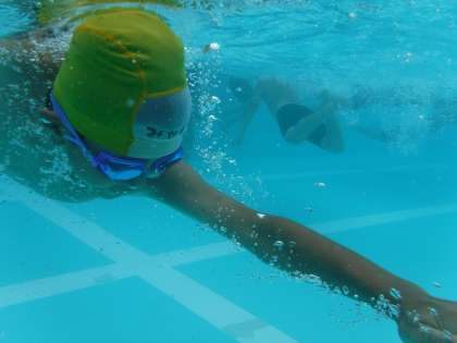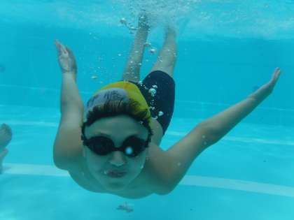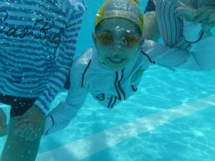 6年生の水中での様子を撮影しました。みんな、水の中でも笑顔で泳いでいました。