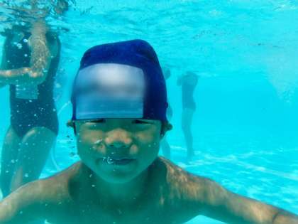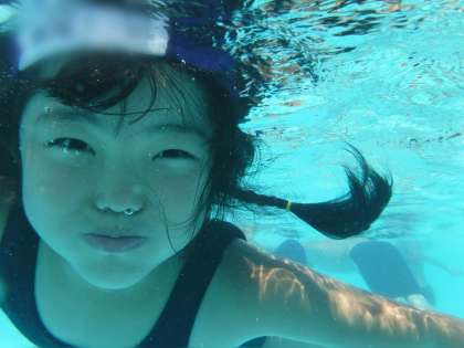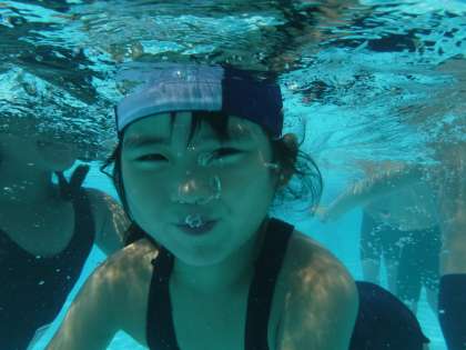 1年生は水中でも、ゴーグルを使わないで目をあけている子が多いです。