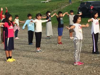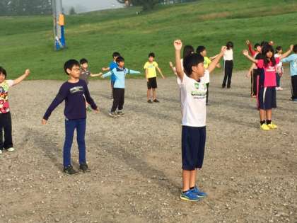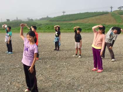 6時に起床、6時30分には朝の集いです。天気は最高で、子どもたちはみんな快調です。