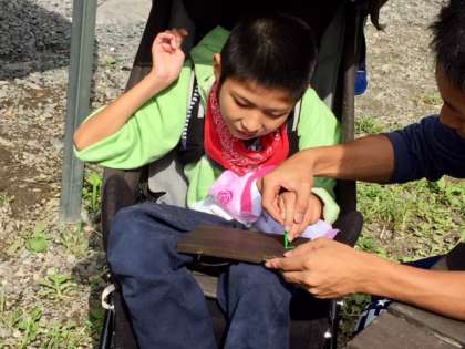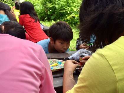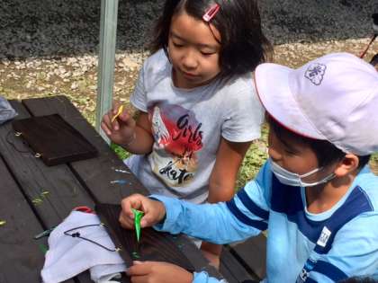 焼き板は持って帰ります。林間学習の思い出の1ページです。