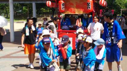 5日は、太陽の町の納涼大会で、子どもみこしが町をめぐりました。朝からとても暑い中、みんながんばりました。