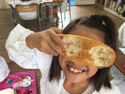 今日から給食が再開しました。今日の給食は、焼きハンバーグ、豆乳コーンスープ、ボイルキャベツでした。久しぶりにみんなと食べる給食で、笑顔がいっぱいでした。