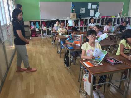 教育ジャーナリストの関原美和子さんと小学館の川辺一雅さんに、本校の授業を参観していただきました。お二人は全国の学校の授業を参観されていますが、子どもたちの素直で明るい様子に感心しておられました。