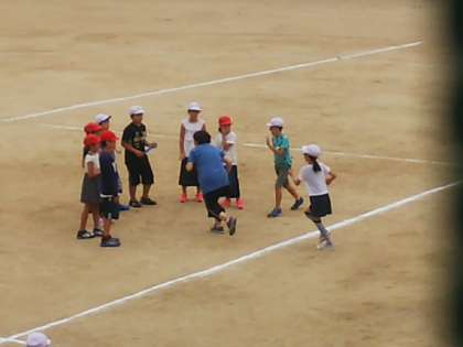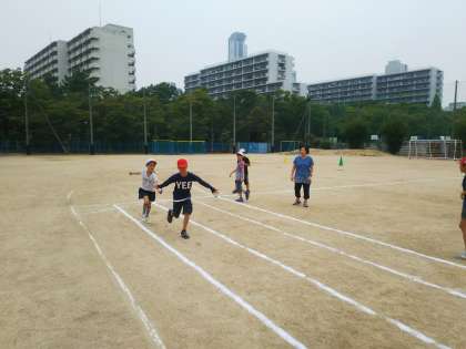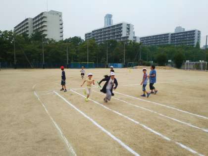 4年生がリレーの朝練をしていました。前走の友だちをぎりぎりまで引きつけて、ダッシュ!バトンを渡すときの「はいっ!」という元気な声が響いていました。