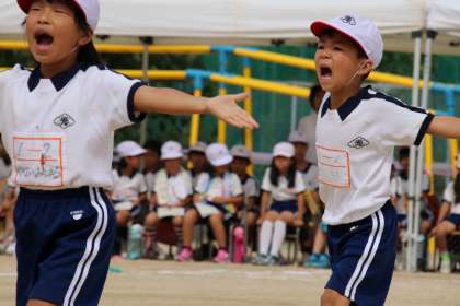 運動会のアイドルはなんといっても1年生。今週には動物園に遠足に行きます。一足はやく、動物探しの演技を見せてくれました。