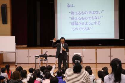 600校以上の学校で「いのちの授業」をしてこられた、特定NPO法人「いのちの教室」から、若尾 久先生を山梨県よりお招きしました。低学年、高学年にわけて、いのちについて考える授業をしていただきました。