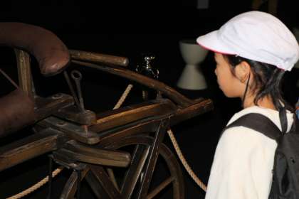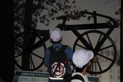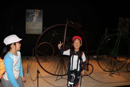 自転車博物館には200年前の自転車からずっと進化してきた自転車が展示されています。とても興味深く見学していました。