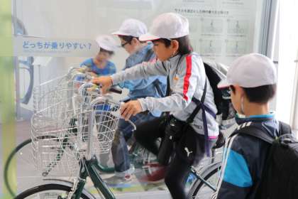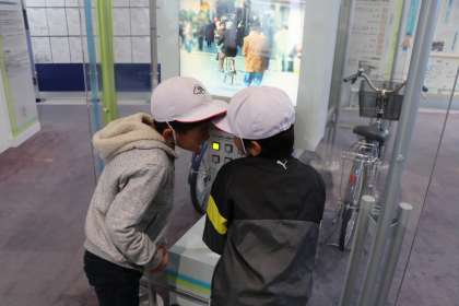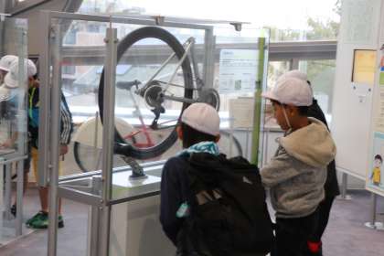 博物館では、自転車の仕組みを体験できるコーナーもあり、いろいろ試しながら、自転車の仕組みを学びました。
