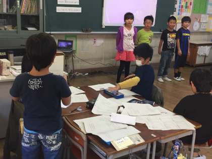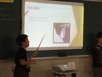 3年生はパソコンのパワーポイントをつかってプレゼンテーションを作りました。ちょうの飼育体験を写真を効果的につかって発表していました。じょうずにできたところを、友だちからほめてもらい、さらに工夫しようとする意欲に結びつけていました。