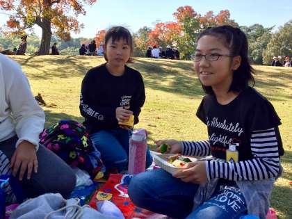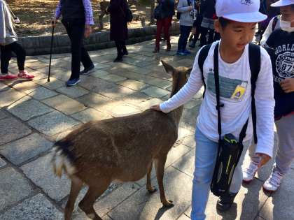 春日大社まで歩きました。広い境内にたくさんの灯篭があるのを見てあるきました。あちらこちらにいる鹿ともふれあい、飛火野ではゆっくりとお弁当を広げることもできました。