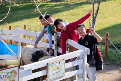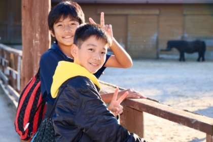 モクモクファームの中には牛、馬、豚がすぐ近くにいます。自然の中で、のびのびと過ごしています。