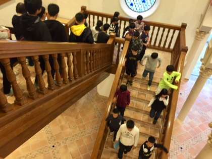 ホテル内は、一般のお客様もたくさんおられます。移動する時も、マナーを守っています。