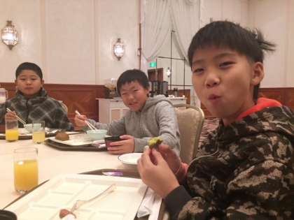 みんな、しっかりと朝食を食べています。元気さのバロメーターです。