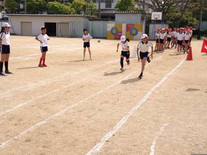 体力テストをするには、最高の天気となりました。ソフトボール投げに50メートル走。ゴールまで全力で走り抜けていました。いい記録が出そうです。