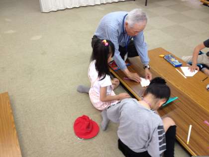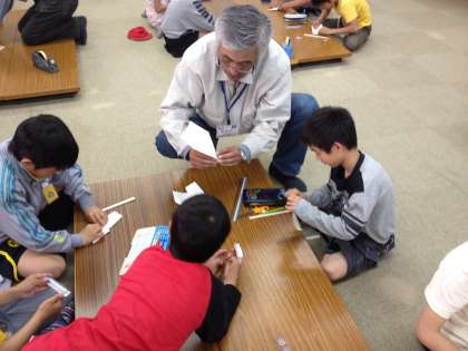 3・4年生が遠足で行く予定の大泉緑地には、紙飛行機を愛好されている方々がよく集まっておられます。いろいろな紙飛行機を飛ばして、遊びにきている子どもたちから人気を集めています。今日は、そのみなさんが5名も本校に来ていただきました。そして、子どもたちに紙飛行機作りを教えてくださいました。子どもたちは、むずかしいなと言いながらも、楽しそうに作っていました。