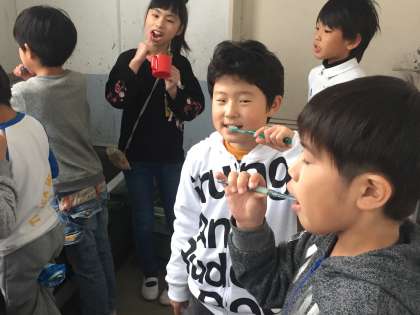 食べたら磨くが基本の歯みがきです。本校では、大切な歯をむし歯や歯周病から守るために、歯みがきを推奨していきます。今週は、まず歯みがき週間にして、子どもたちに歯みがきをさせています。よく見ると歯ブラシの持ち方、磨き方を個別に指導していく必要がある子もいました。給食後の歯みがきは、今週だけでなく、定着できるようにしてまいります。ご家庭でも食後の歯磨きをよろしくお願いいたします。