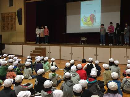 図書委員会が絵本からクイズを出題してくれました。そして、各学級で一番たくさん本を借りて読んでいる子を教えてくれました。本好きな子が、どんどん増えるといいですね。