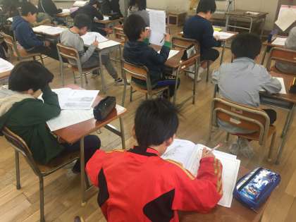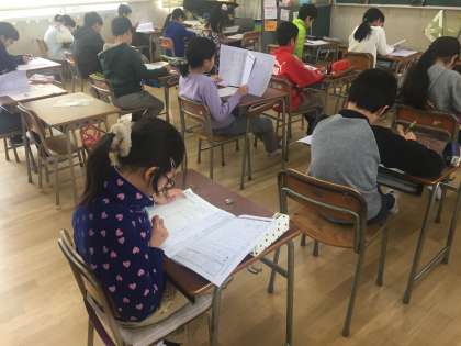 はじめて学力経年調査を受ける3年生、2回目の4年生。それぞれに、真剣な表情で問題を解いていました。1年間の学びの成果が試されます。