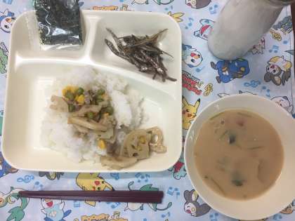 今日の給食は、お正月献立でした。れんこんのちらしずし、ぞう煮、ごまめが出されました。ごまめは、少し苦みがありますから、苦手だという子がいました。ごまめという呼び名を知らない子も、何人かいました。関西のお正月には、丸もち、にんじん、大根、里芋の入った白みそのお雑煮とれんこんや黒豆、ごまめが欠かせません。経年テストを終えて、ほっとした表情でお正月気分を味わいました。