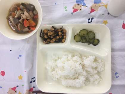 今日の給食は、筑前煮、ひじき豆、きゅうりのかつお梅風味でした。昨日、4年生は栄養指導で、よくかんで食べることの大切さを学びました。今日は、ひじき豆が出ていましたから、しっかりと30回かんで食べることができたかな?