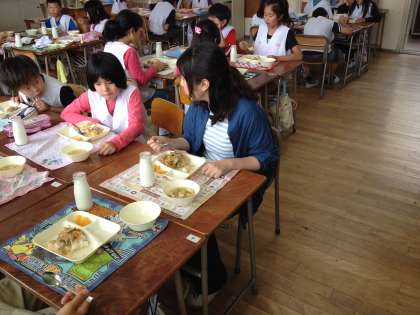 今日も相愛大学から学生ボランティアさんに来ていただいています。いきいき活動でもお世話をいただいている方なので、すでに子どもたちとは顔なじみ。給食中の話もはずんでいました。