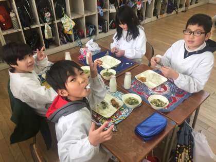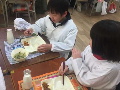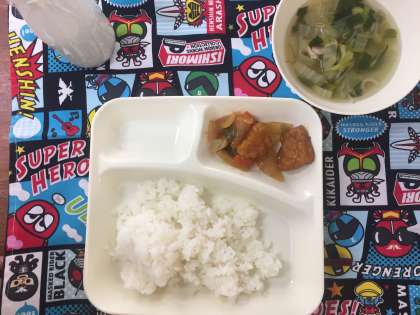 今日の給食は酢豚、中華スープ、焼きのりでした。一年で一番寒いといわれる時期ですが、給食を食べている教室の中はあったかです。しっかりと食べられる時は、大丈夫です。