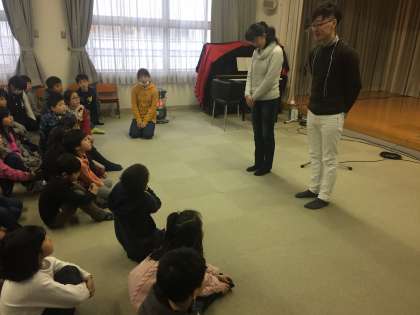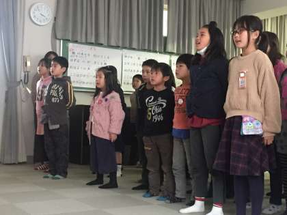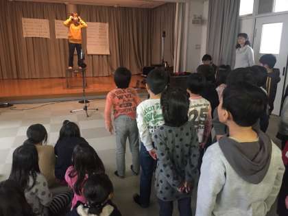 創立40周年の歌「ここはひかり」は、CDに収録して、全児童に配布いたします。その中には、昨年度の40周年を祝う会での全校合唱と、各学年の代表による合唱が入ります。今日は、作曲者のたかおかまりこさん、CD制作のスーパーバイザーとして西岡健さんにお越しいただき、レコーディングを行いました。みんな緊張しつつも、力を出し切りいい演奏ができました。完成が楽しみです。