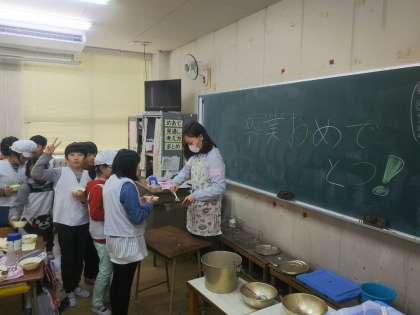 5年生の黒板には卒業おめでとう!のメッセージがありました。6年生に気持ちを届けてくれました。