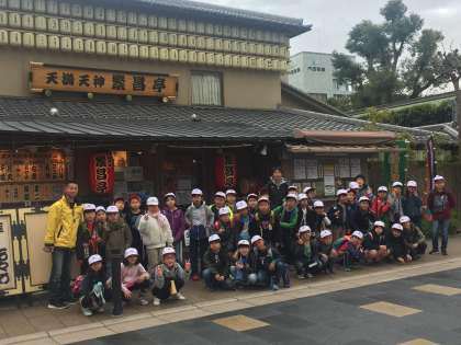 今昔館では、昔の道具をたくさん見せてもらって、体験もさせていただきました。その上にすばらしい雛人形も見ることができました。その後、天神橋筋商店街をぬけて、大阪天満宮、天満天神繁昌亭まで歩きました。商都大阪の町を感じることができた社会見学でした。