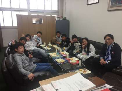 今週は、6年生といっしょに校長室で給食を食べます。どの子とも思い出がいっぱいあって、名残惜しい時間でした。
