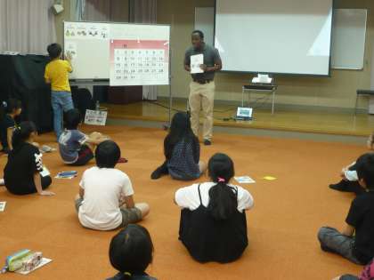 今年も大阪市の施策C-Net事業で隔週の水曜日を中心にジャマイカのDelando Powell先生に来ていただいています。主として5年・6年の英語活動でお世話になっております。子どもたちは、楽しみながら英語に親しんでおります。