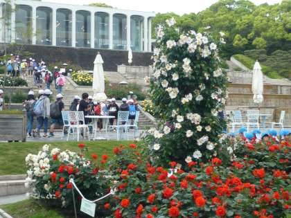 「須磨離宮公園」の中を歩いてアスレチックの場所まで行きます。公園のバラ園は満開でした。