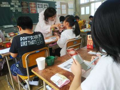 歯科衛生士の平中先生をお招きし、歯と口の健康について学習しました。歯周病の原因が歯垢(しこう)なので、歯を一本一本ていねいに磨く大切さを学ぶことができました。また、よく噛んで食べる習慣は、歯を一生大切にすることにつながります。さっそく、今日の給食からもぐもぐもぐ…と、よく噛んで食べたかな?