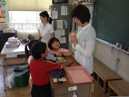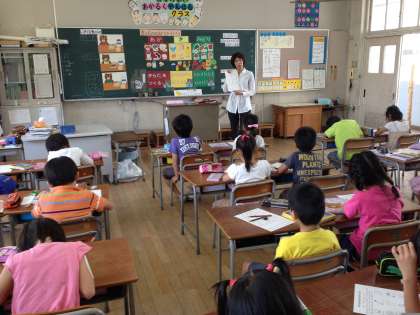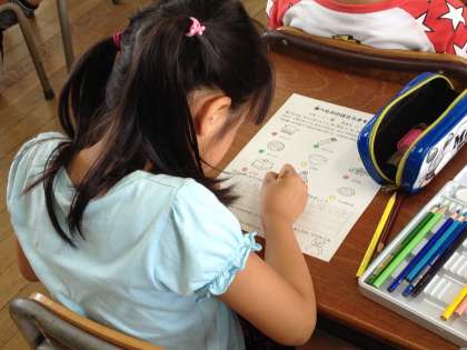 2年生は栄養学習をしました。講師は、南港桜小学校の栄養教諭、山崎先生です。いろいろな食材を、栄養の三要素ごとに分類する学習をしていました。赤と緑、黄色に色分けされたカードをみて、バランスよく食べることの大切さに気付いていきます。