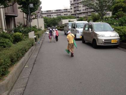 2年生は、町たんけんに出ました。1年生の時とちがって、見学の仕方も記録のつけ方も成長しています。車止めの幅を、自分の体をもとにして測っている子もいました。「これじゃ車は通れないね」と納得していました。