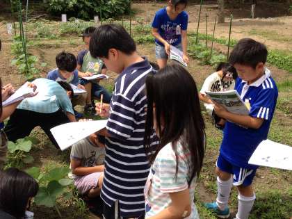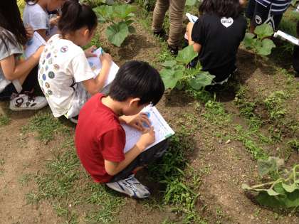 4年生のへちまも随分と成長してきました。ノートにも記録することがたくさんあります。