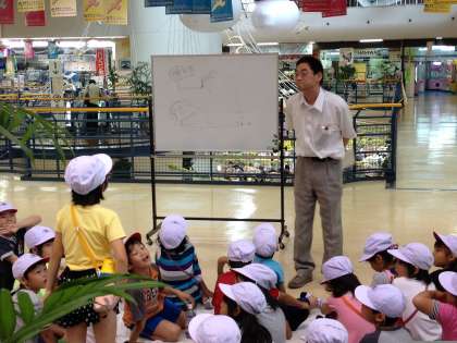 2階の専門店を見学した後、カナートの店長さんに来ていただき、質問タイムになりました。一日の来店者数、売れ筋商品など様々な内容を質問していました。