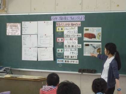 6年生は南港みなみ小学校から栄養教諭の先生をお招きし、「バイキング給食にチャレンジしよう」をテーマに、栄養の学習をしました。写真にあるバイキング表から食材を選び、栄養のバランスのとれた給食を考えるという学習内容です。なかなかよく知っていて、栄養を考えた給食を考案していました。これからも栄養のバランスを意識した食事をとっていってほしいと願っています。