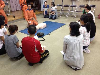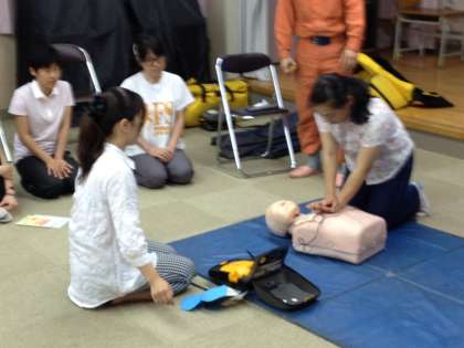 PTAのみなさんと教職員で「救命救急講習」を受けました。救急隊員の方から、丁寧な実習をうけると、あらためて命を守る重みを感じました。