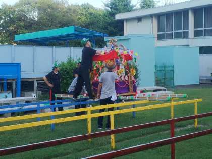 今は映画を見ています。外では天体観測の準備や、納涼大会のみこしの準備が行われていました。この後かき氷も食べられますよ。まだお家にいる子、今すぐおいで!