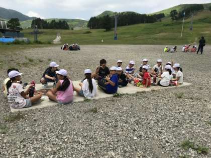 バスは予定通り進み、無事ハチ高原に到着しました。みんなハイテンションのまま元気です。お弁当をいただき、12時45分ごちそうさまをしました。さぁ、楽しむぞ〜!!