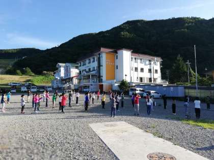 林間学習は2日目になりました。ゆっくり休んだはずですが、みんな眠そうです。さすがハチ高原です。涼しさを感じます。あちこちから他校の朝の集いの声が聞こえる中、ラジオ体操で元気を取り戻しました。
